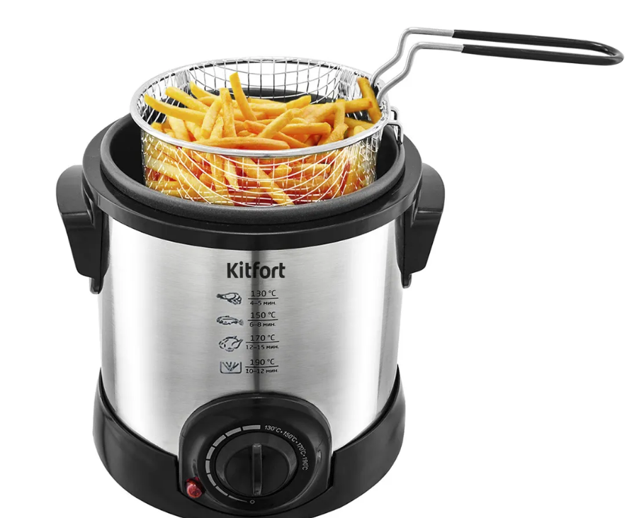 Во фритюре продукты готовятся быстрее, чем на плите, за счет высоких температур со всех сторон. Там можно пожарить картошку, мясо, сыр, пирожки, а масла в них будет содержаться не больше, чем при жарке на сковороде.