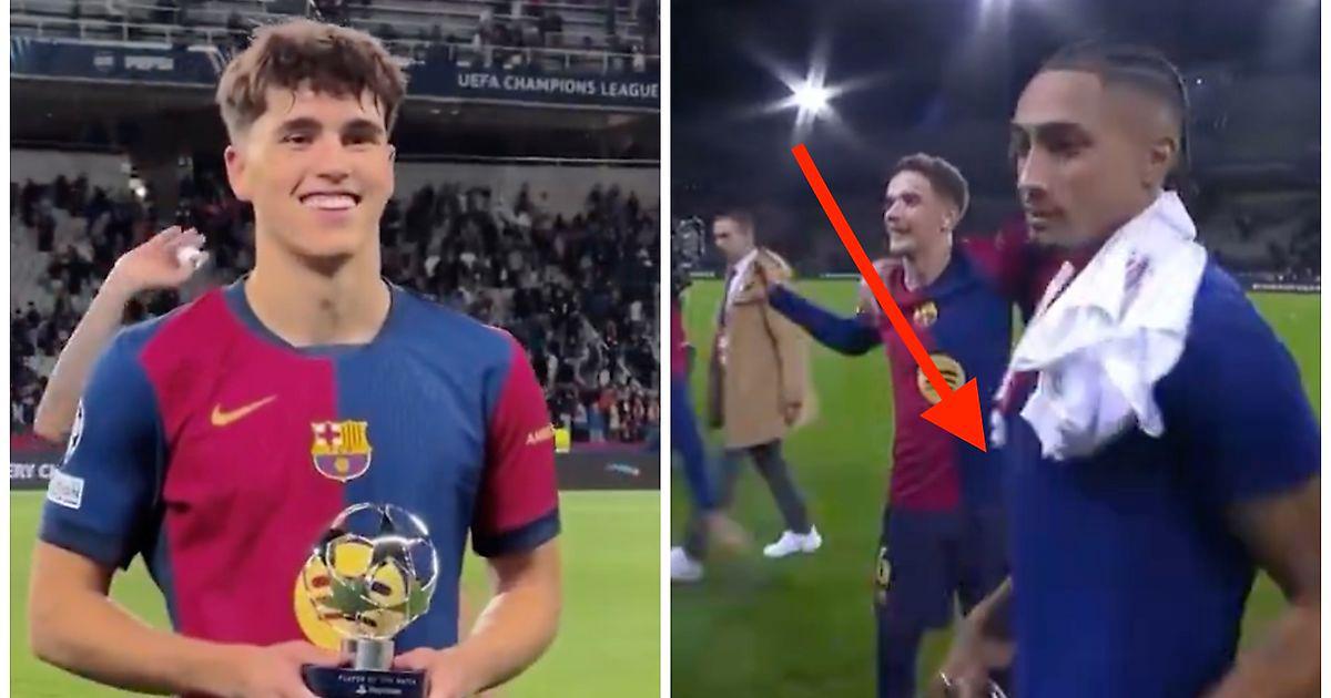 После разгрома «Бреста» (3:0) в Лиге чемпионов Рафинья бросил смятую бумагу в Пау Кубарси, который позировал с наградой игроку матча. 17-летний футболист только посмеялся над этим.