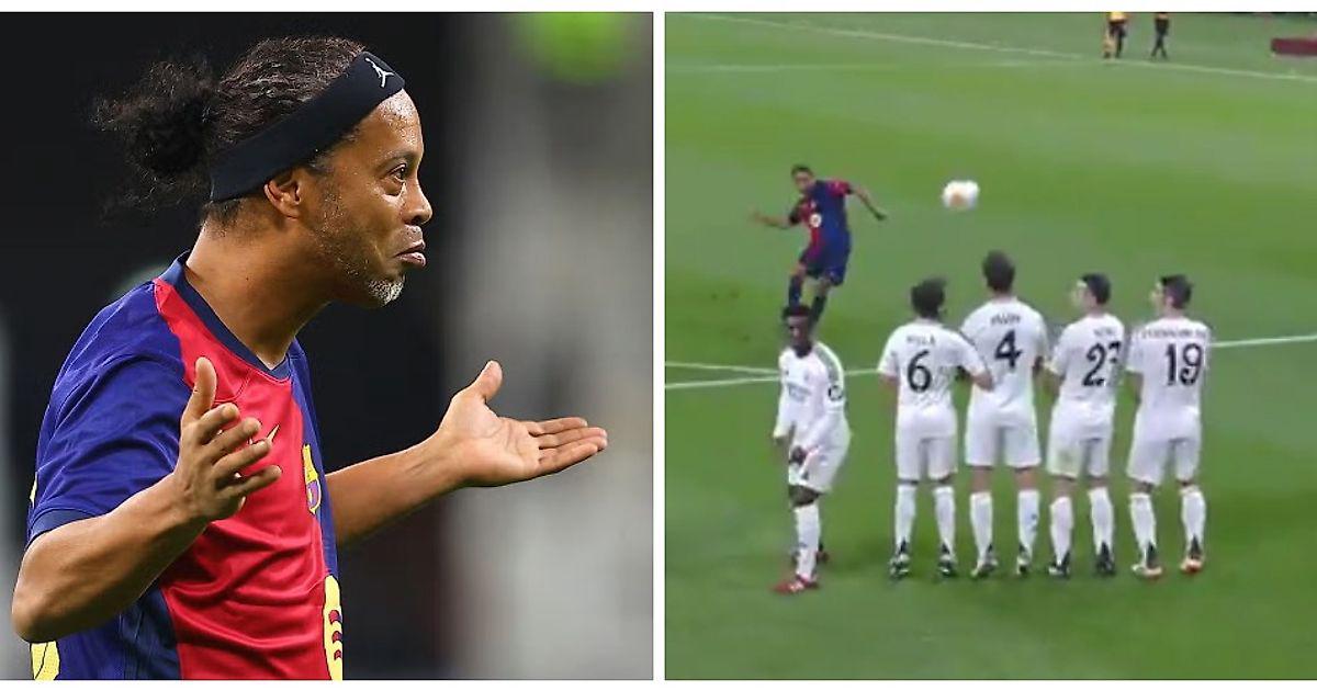 🎥 Волшебный гол 44-летнего Роналдиньо за «Барсу»! Забил «Мадриду» идеальным ударом со штрафного