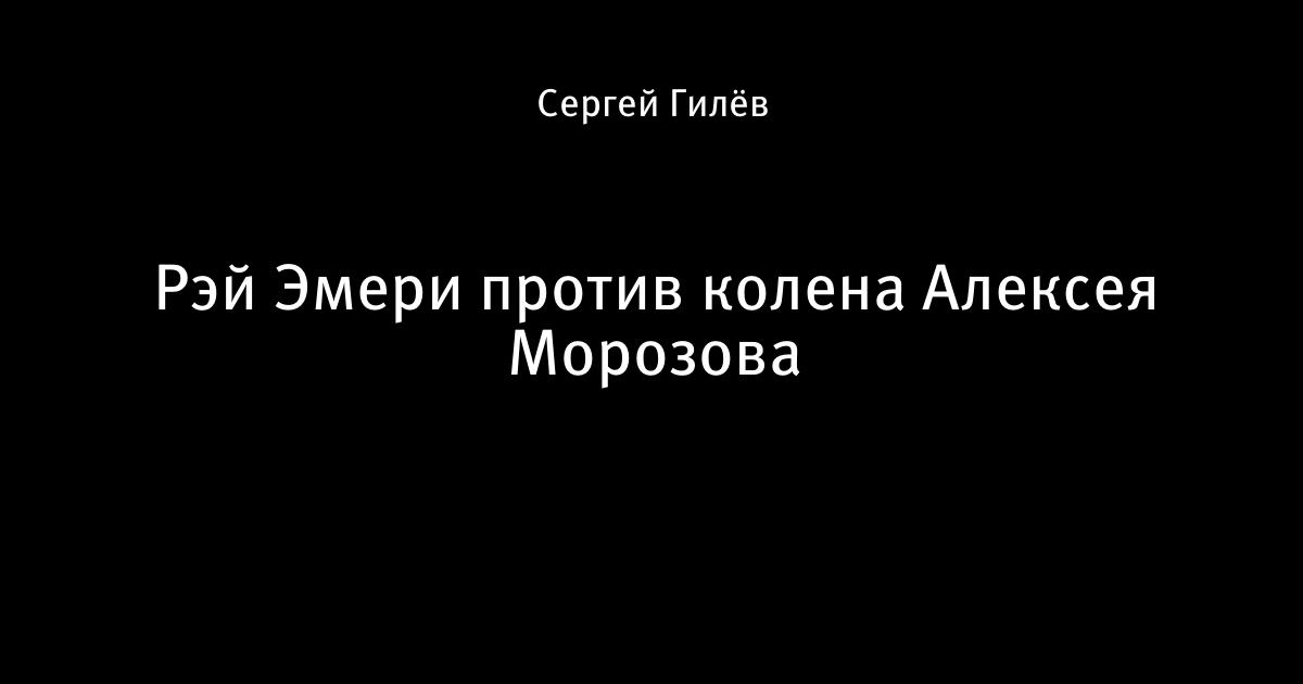 9 октября 2008, 10:23 Рэй Эмери против колена Алексея Морозова Автор Сергей Гилёв Этот пост опубликован в блоге на Трибуне Sports.ru. Присоединяйтесь к крупнейшему сообществу спортивных болельщиков! Другие посты блога Айс-ТВ
