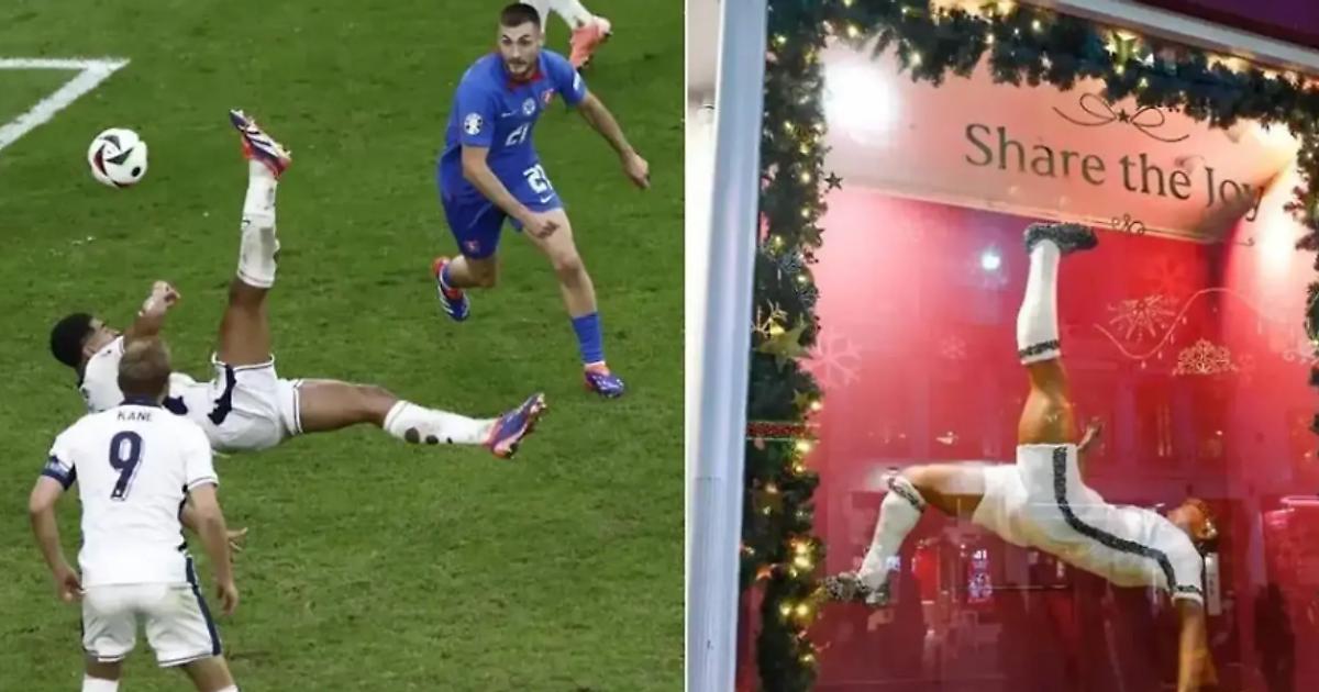 Статуя Беллингема в Бирмингеме – полностью из еды! Она сделана в честь лучшего гола Англии на Евро