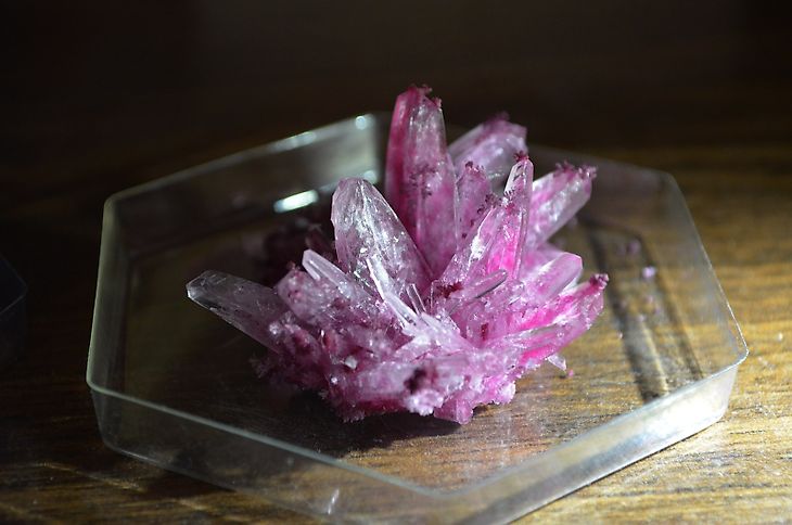Ребенок растворяет химические вещества в воде согласно инструкции, затем помещает в раствор затравку (небольшой кристаллик или шершавую поверхность), на которой начинают образовываться кристаллы. Процесс может занимать от нескольких дней до нескольких недель, в течение которых ребенок наблюдает за ростом кристаллов. Это – самый лучший подарок на Новый год мальчику, если он проявляет интерес к химии и созданию чего-то нового.