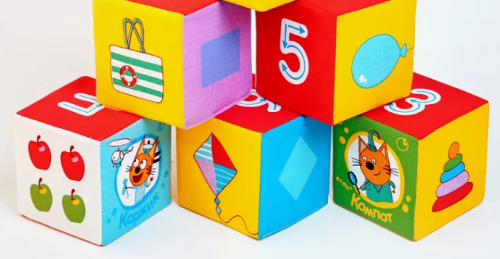 С мягкими развивающими кубиками малышу можно безопасно играть и веселиться. Такие кубики могут быть музыкальными, с рисунками и обычными без надписей. Эта игрушка поможет ребенку начать выговаривать первые слова.