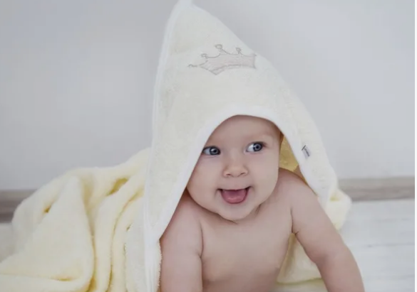 Махровое полотенце будет отличным практичным подарком для малыша, ведь принимать водные процедуры грудному ребенку нужно часто. Выбирайте натуральный материал полотенца: из бамбукового волокна или хлопка.