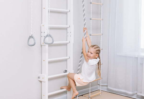 Такая стенка не займет много места и будет близко к стене. На лестнице, канате и кольцах малыш будет физически развиваться и приобщаться к здоровому образу жизни.