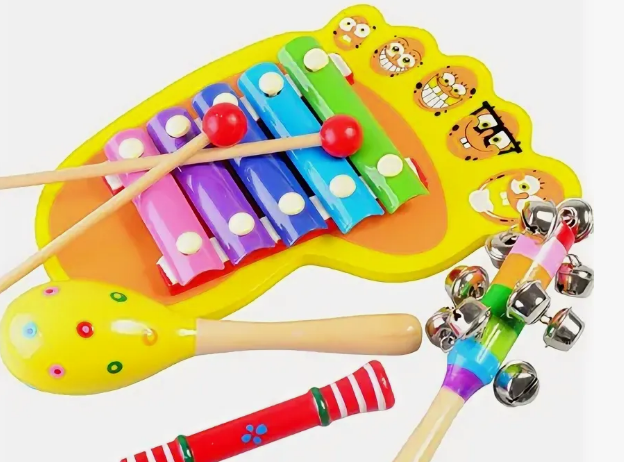 Можно купить набор, где будет гитара, барабан, металлофон, дудка. Они хорошо развивает моторику рук.