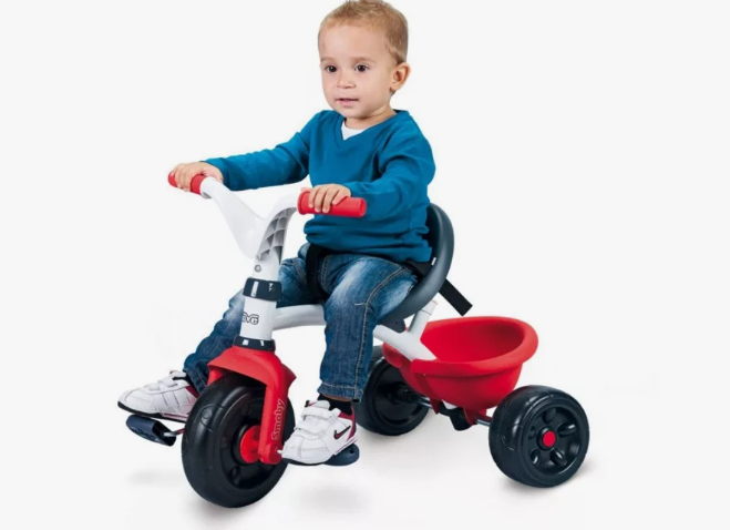Этого трехколесного друга малыша можно подарить ребенку, который старше 2 лет и уже хорошо стоит на ногах и держит равновесие. Велосипед лучше приобрести с наличием корзинки для игрушек и интересными мерцающими предметами.