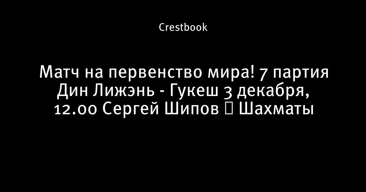Матч на первенство мира! 7 партия 🏆 Дин Лижэнь - Гукеш ⏰ 3 декабря, 12.00 🎤 Сергей Шипов ♛ Шахматы