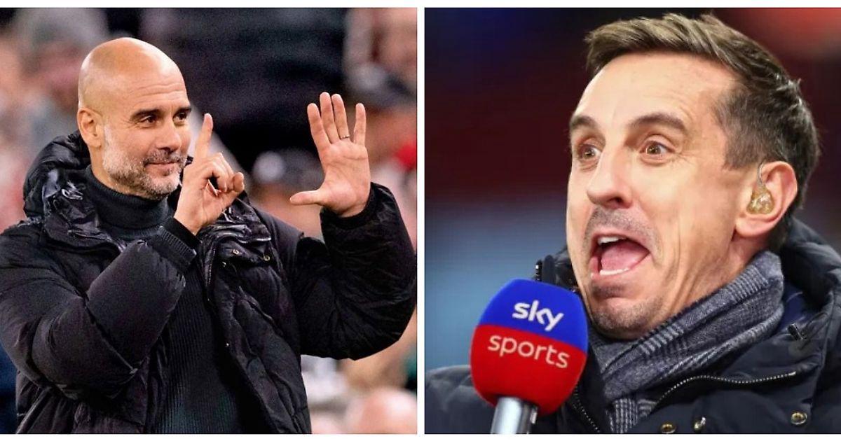 📸 Невилл неловко потроллил Гвардиолу после жеребьевки Кубка Англии. Теперь фанаты смеются над самим Гари