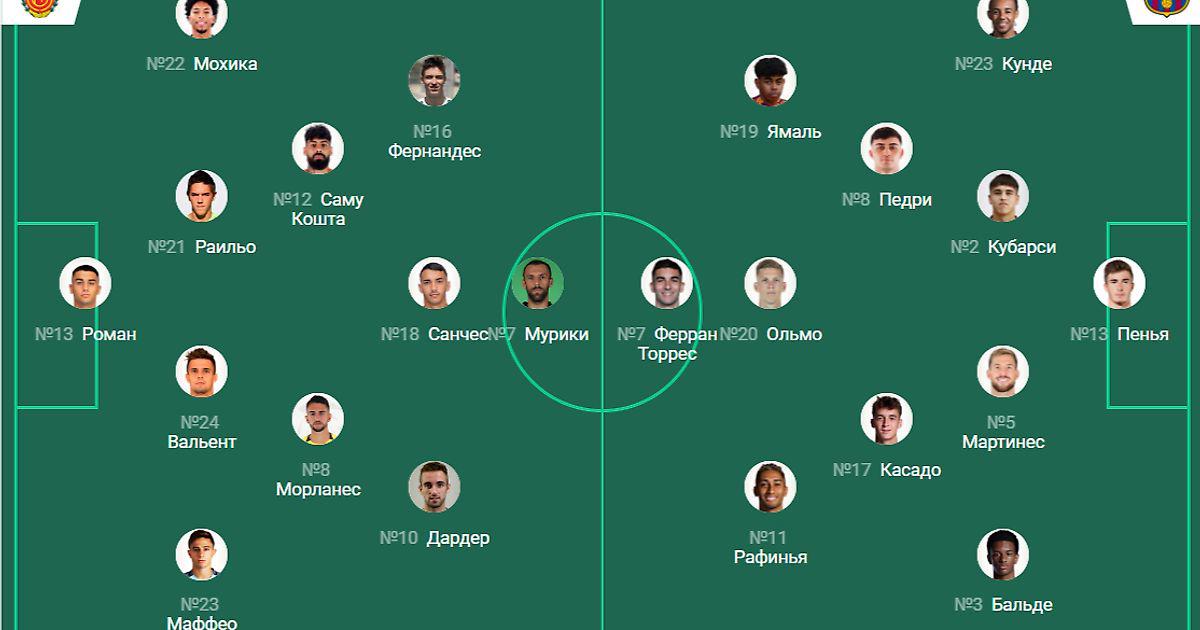 У каталонцев одно изменение. Ферран Торрес появился вместо Роберта Левандовского. Я так думаю, что поляку дали отдохнуть. Ламин Ямаль окончательно вернулся после травмы. По сравнению с прошлым матчем главный тренер «Мальорки» Хагоба Аррасате дал отдохнуть Наварро и Ларину.