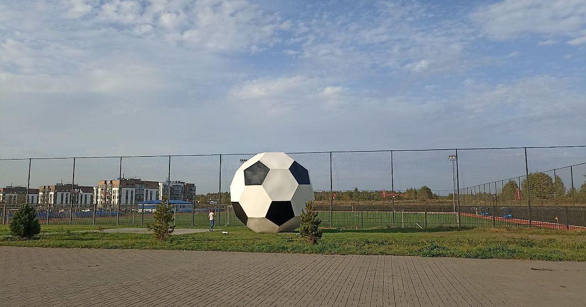 Поляна типовая, с искусственным покрытием. Есть трибуны в три ряда человек на 200 и возможность свободно прогуляться вокруг поля. Мы посмотрели минут 20, покушали с видом на игру с первого ряда и пошли гулять вокруг поля, смотря при этом матч. Рядом с полем стоит большой футбольный мяч, который очень понравился сыну.