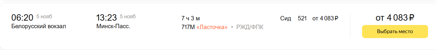 Как видите, в сравнении с самолетом доехать до Минска из Москвы поездом дешевле только в плацкарте. Большинство поездов отправляются в вечерние часы. Объяснить это просто, время в пути займет всю ночь, и на следующее утро путешественники оказываются в столице Беларуси.