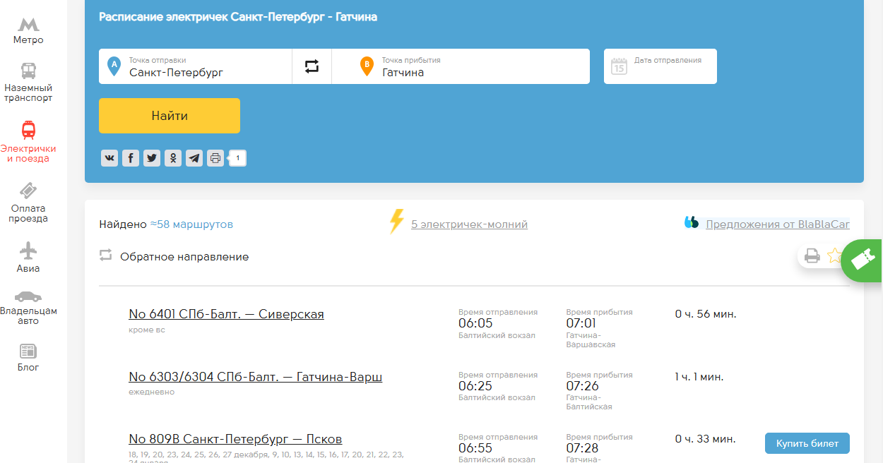 Расписание электричек, время в пути и маршрут поездки можно посмотреть на сайте или в приложении TransportSpb.