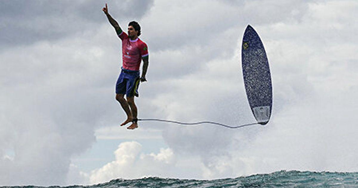 29 июля. Бразильский серфер Габриэль Медина празднует рекорд в квалификации.