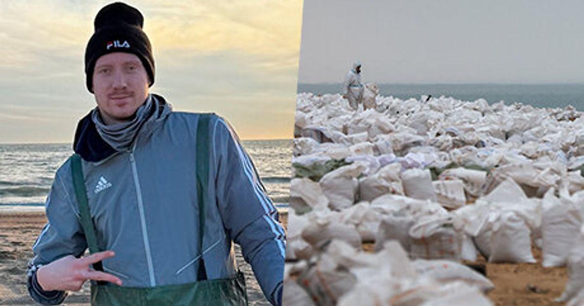 «Это мировая катастрофа». Вратарь «Енисея» помогал на Черном море после разлива мазута – и у него много вопросов