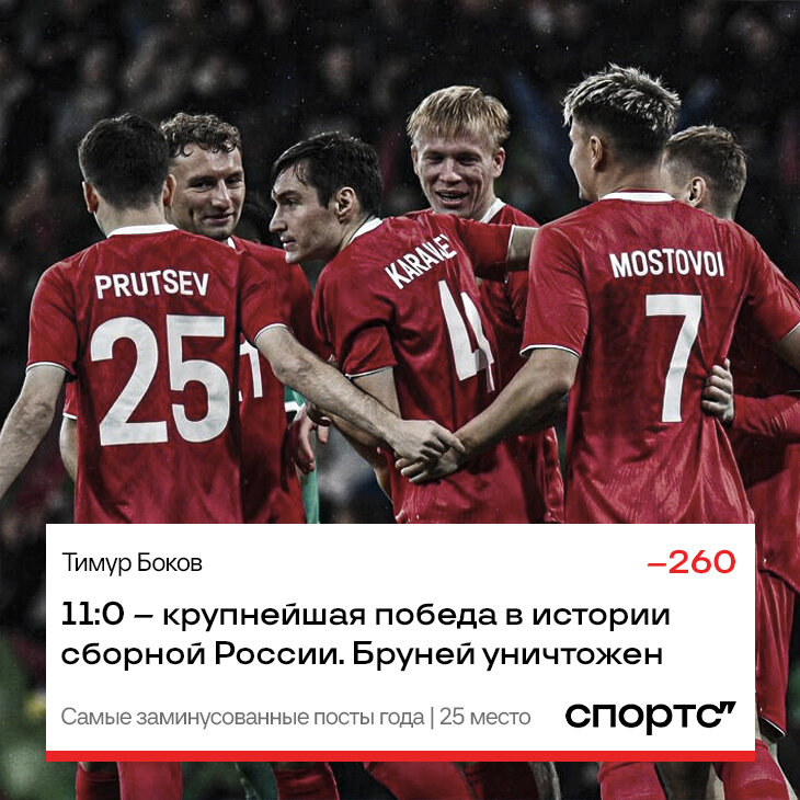 25. Бруней не впечатляет, но результат исторический – самый крупный разгром за всю историю сборной России. Было 9:0 с Сан-Марино в 2019-м – рекорд переписан.