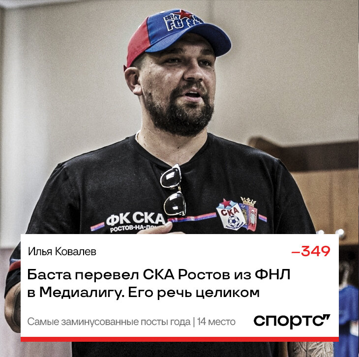 14. Ростовский СКА переходит в медиафутбол из Второй лиги ФНЛ. Об этом объявил Василий Вакуленко (рэпер Баста), в 2019-м ставший собственником клуба.