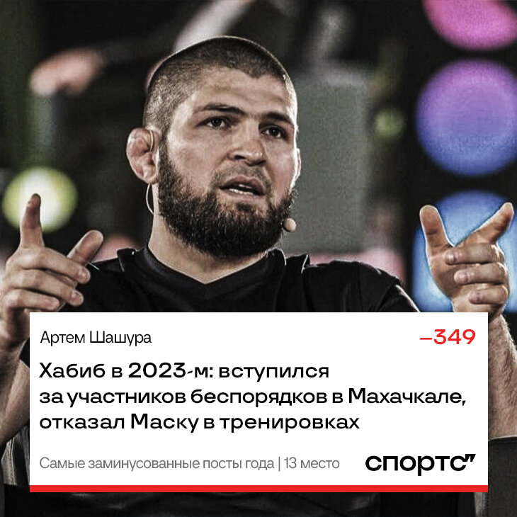 13. Хабиб Нурмагомедов завершил профессиональную карьеру еще в 2020-м, но все еще остается одной из главных звезд индустрии смешанных единоборств.