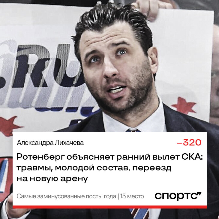 15. «Автомобилист» выбил СКА из плей-офф КХЛ (4-1 в серии). Главный тренер СКА Роман Ротенберг после этого ярко выступил с объяснениями. Еще в послематчевом комментарии он сделал отсылку к травмам и похвалил молодой состав СКА за хорошее выступление.