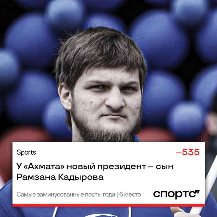 6. Ахмат Кадыров назначен новым президентом «Ахмата» – сменил Магомеда Даудова. Он старший сын Рамзана Кадырова, родился в ноябре 2005 года.