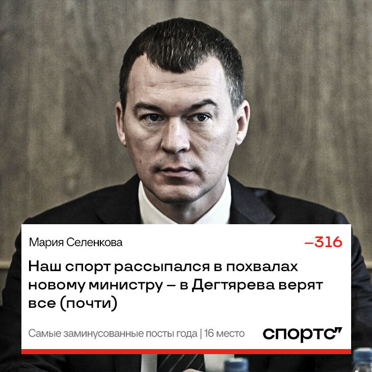 10. На должности председателя комитета по спорту Михаил Дегтярев запомнился еще и тем, что в 2020-м неожиданно поздравил молодежную сборную России по хоккею с победой на чемпионате мира.
