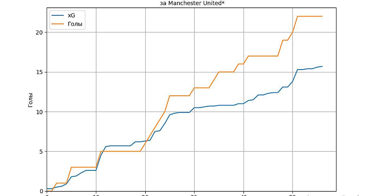 - На 6 голов больше, чем ожидалось - 140% реализации от xG - 0.5 гола в среднем на 90 минут