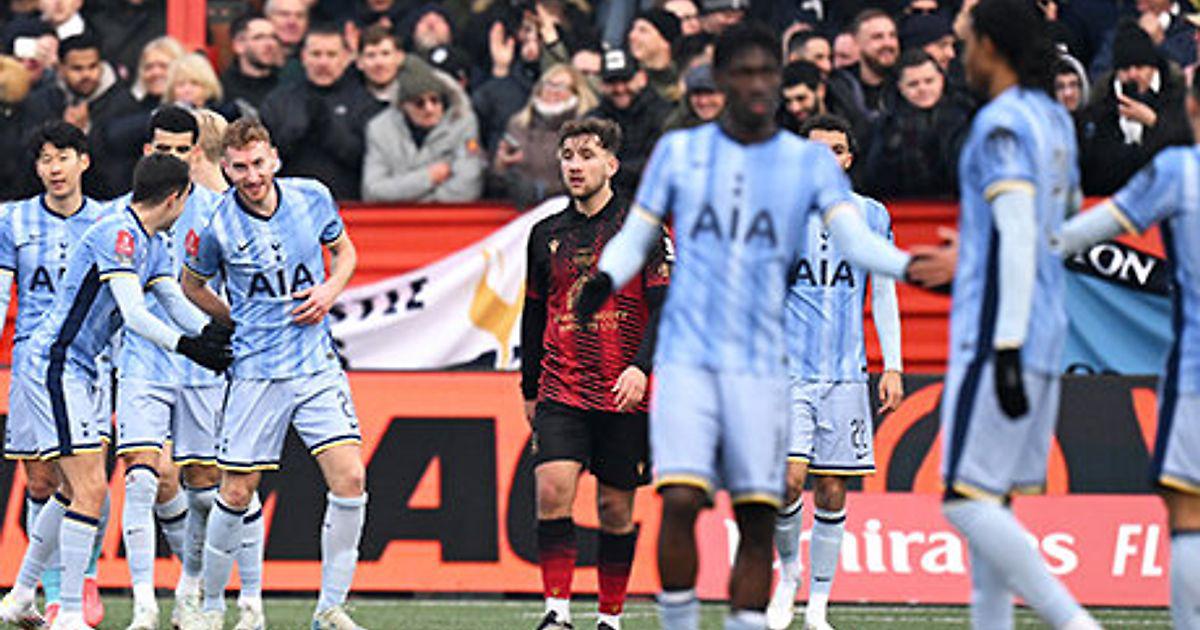 В истории АПЛ «Тоттенхэм» – только четвертый, кто не смог в основное время обыграть соперника из нон-лиги. Два потом побеждали в переигровке («Лестер» и «Чарльтон»), а «Вест Хэм» чуть не вылетел от «Киддерминстера» в 2022-м – прошел с большим трудом: Деклан Райс сравнял на 90+1, Джаррод Боуэн забил победный на 120+1.
