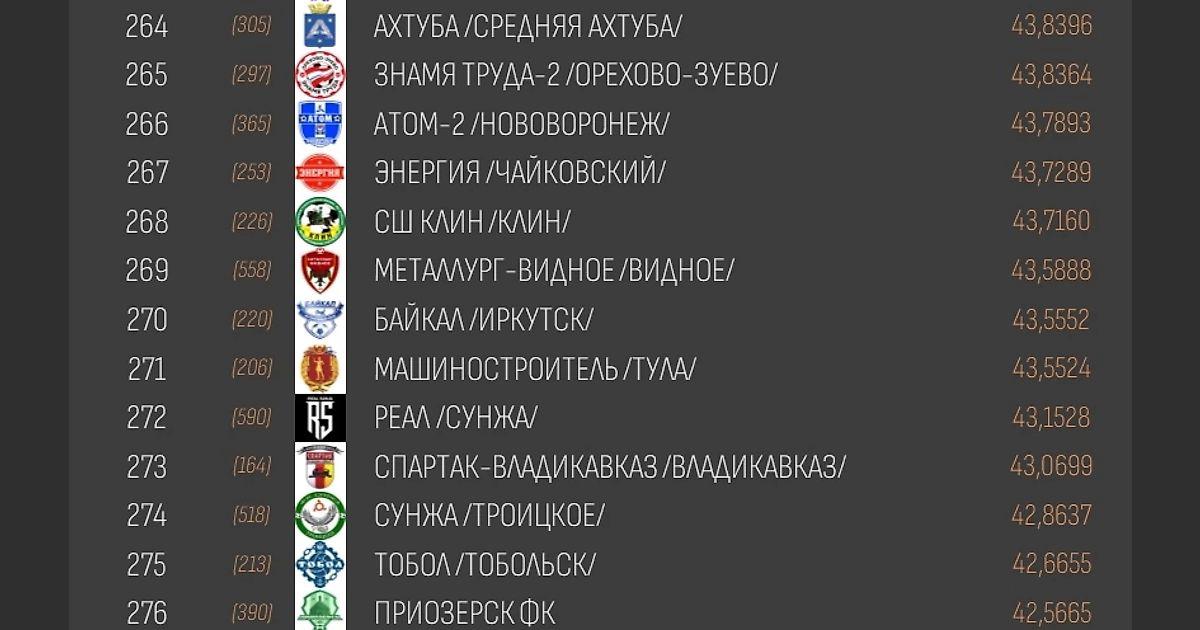 273. (164) СПАРТАК-ВЛАДИКАВКАЗ /ВЛАДИКАВКАЗ/ 43,06990