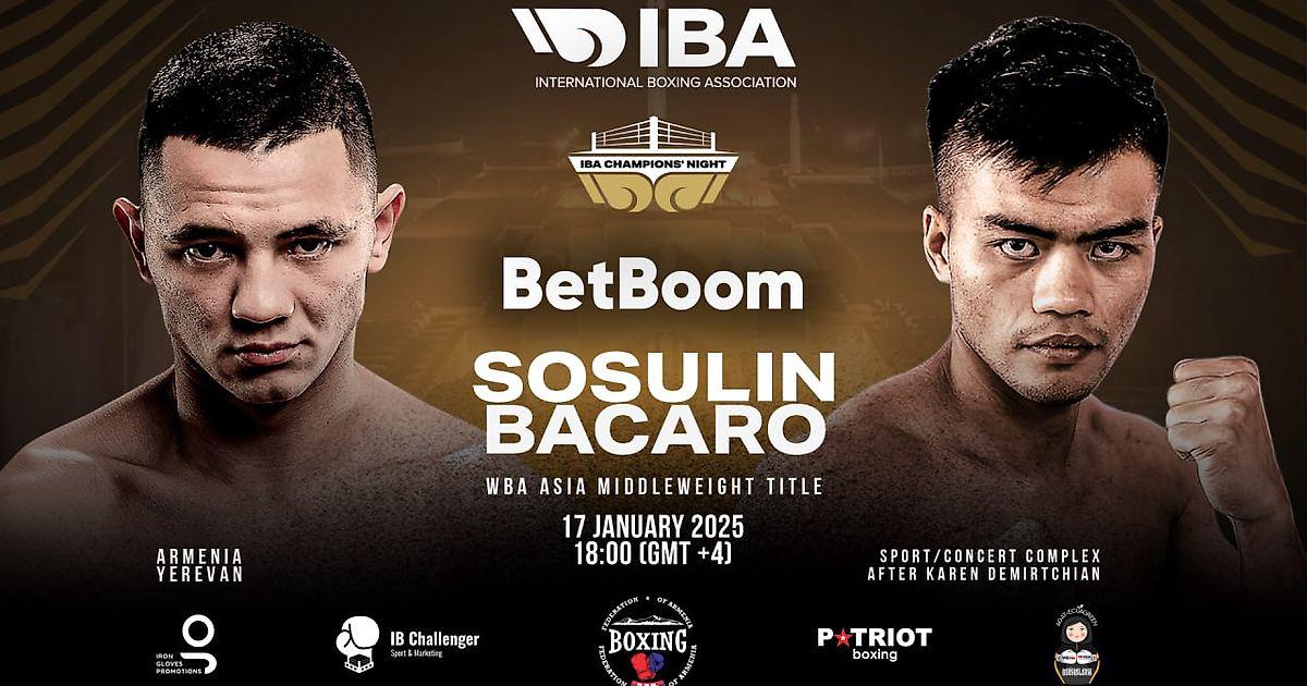 В прямом эфире турнир «Ночь чемпионов IBA» в Ереване покажет телеканал «Матч! Боец», начало трансляции 17 января в 16:55 мск. Генеральным партнером вечера бокса выступит букмекерская компания BetBoom.