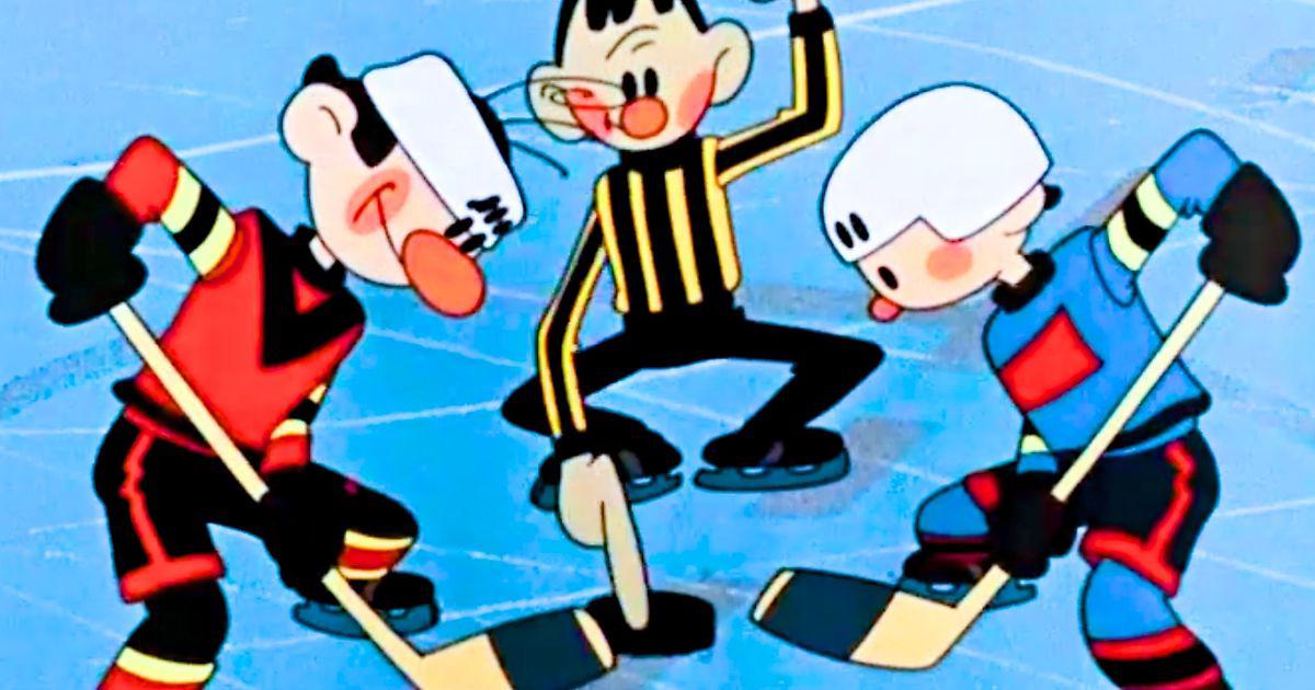 А показать есть что. Режиссер мультфильма Борис Дежкин (его фамилия пишется через букву «е», но «Спортс» игнорирует ее и ставит автоматом «е», имейте ввиду) оригинально решил изобразить градус накала в ответных матчах – когда игроки перед вбрасыванием не могут найти шайбу и начинают зарубу на клюшках, пока судья прямо не указывает хоккеистам, где находится главный спортивный инвентарь.
