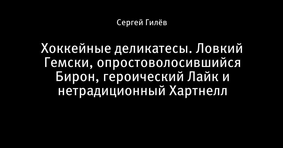 Хоккейные деликатесы. Ловкий Гемски, опростоволосившийся Бирон, героический Лайк и нетрадиционный Хартнелл