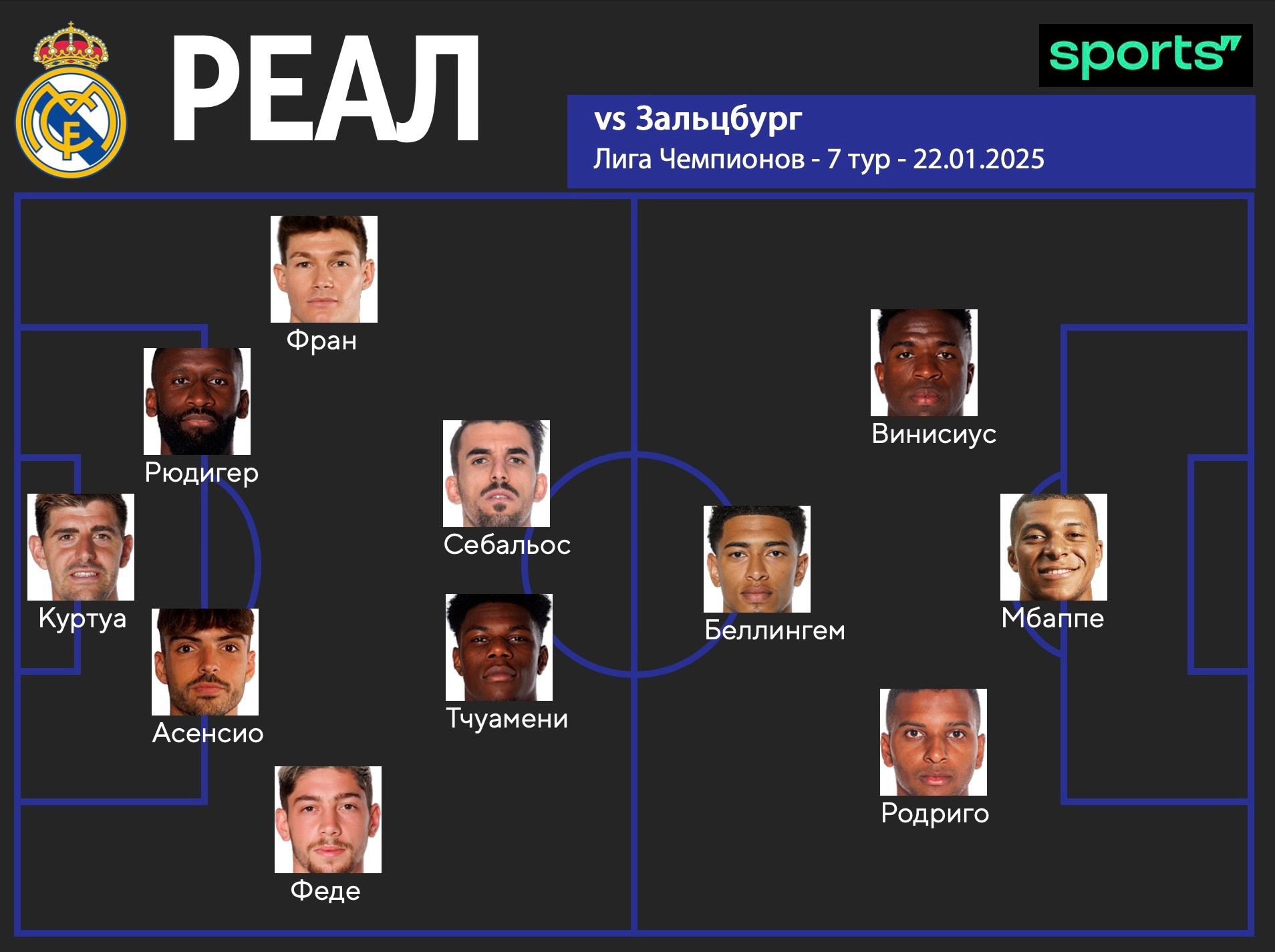 Тчуамени займет место в центре рядом с Себальосом, а Винисиус вернется в старт и сыграет на левом фланге. По остальным позициям особых изменений ожидать не стоит – матч ключевой и его надо выиграть, поэтому выйдет сильнейший из возможных составов.