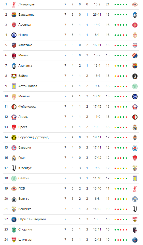 «Арсенал» и «Интер» на 99% попали в ТОП-8. Им достаточно не проиграть. А чтобы там не оказаться: «Арсенал» должен проиграть «Жироне» с разницей 10+ мячей, а «Интер» «Монако» с разницей в 3 мяча. Такие события маловероятны.