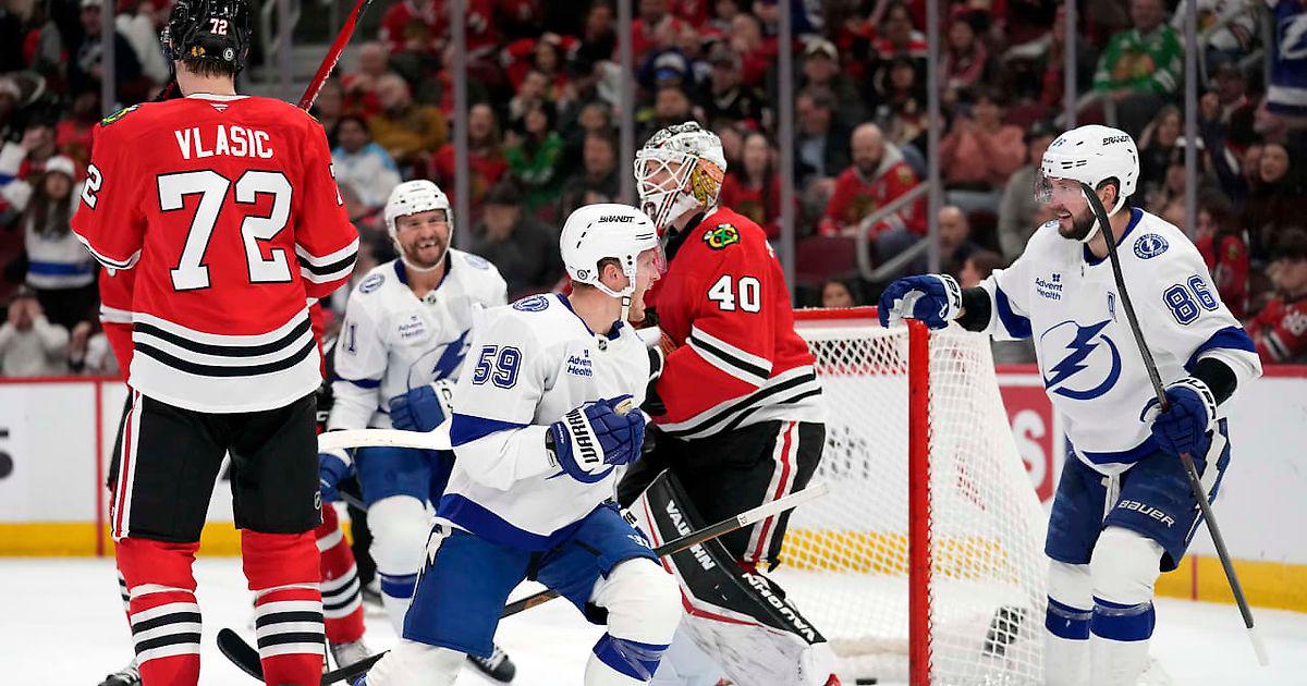 «Чикаго Блэк Хоукс»-»Тампа-Бэй Лайтнинг» 3:4 (ОТ). Никита Кучеров в овертайме принёс победу гостям. Никита Кучеров набрал 3 очка (1+2), Джейк Гюнтцель набрал 2 очка (1+1), Виктор Хедман отдал 2 результативные передачи, Юнас Юханссон отразил 11 бросков. У хозяев Франк Назар и Луи Кревье набрали по 2 очка (1+1).