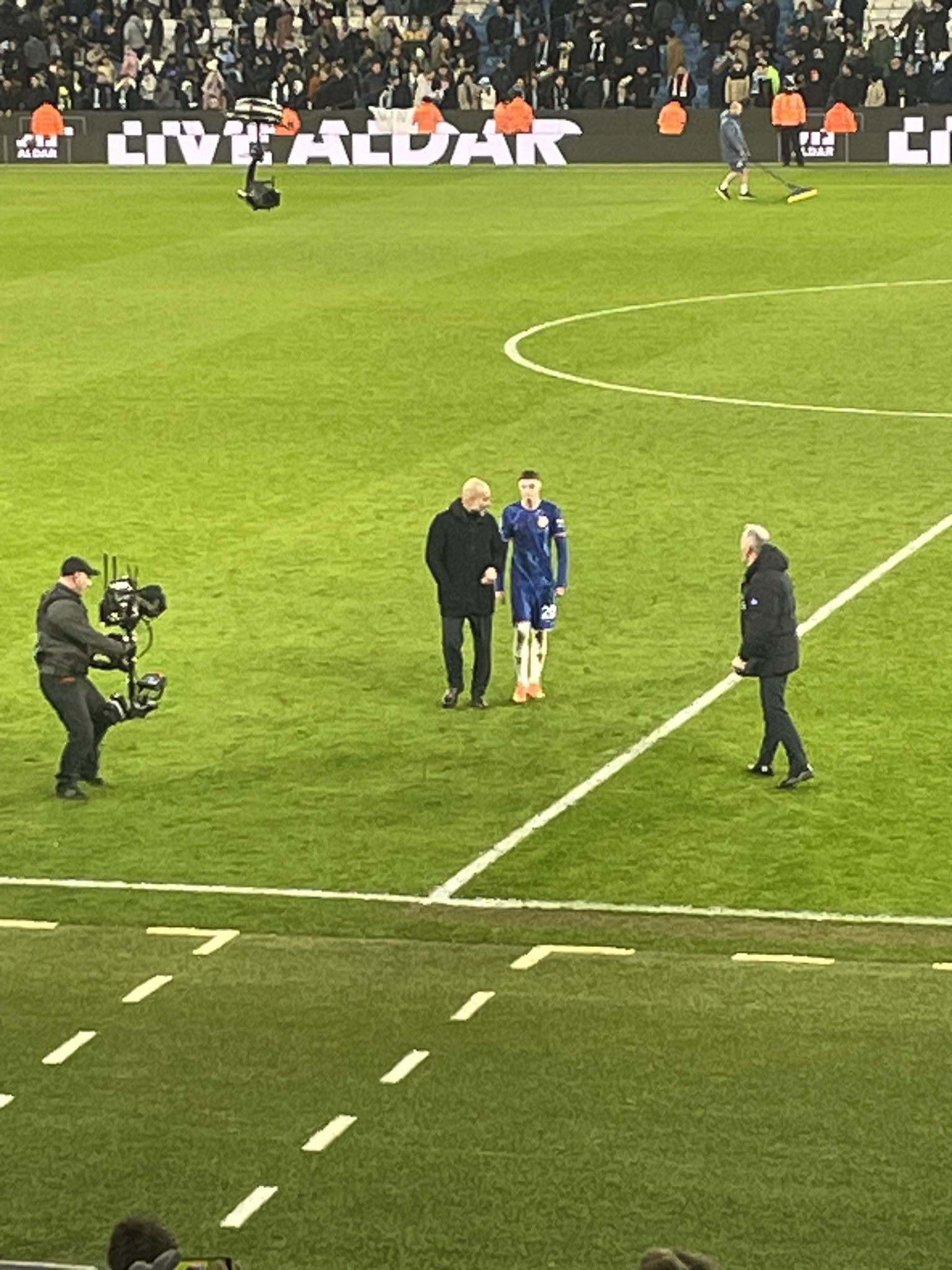 Коул Палмер провел на поле весь матч, но результативными действиями не отметился. После игры англичанин тепло общался с Гвардиолой.