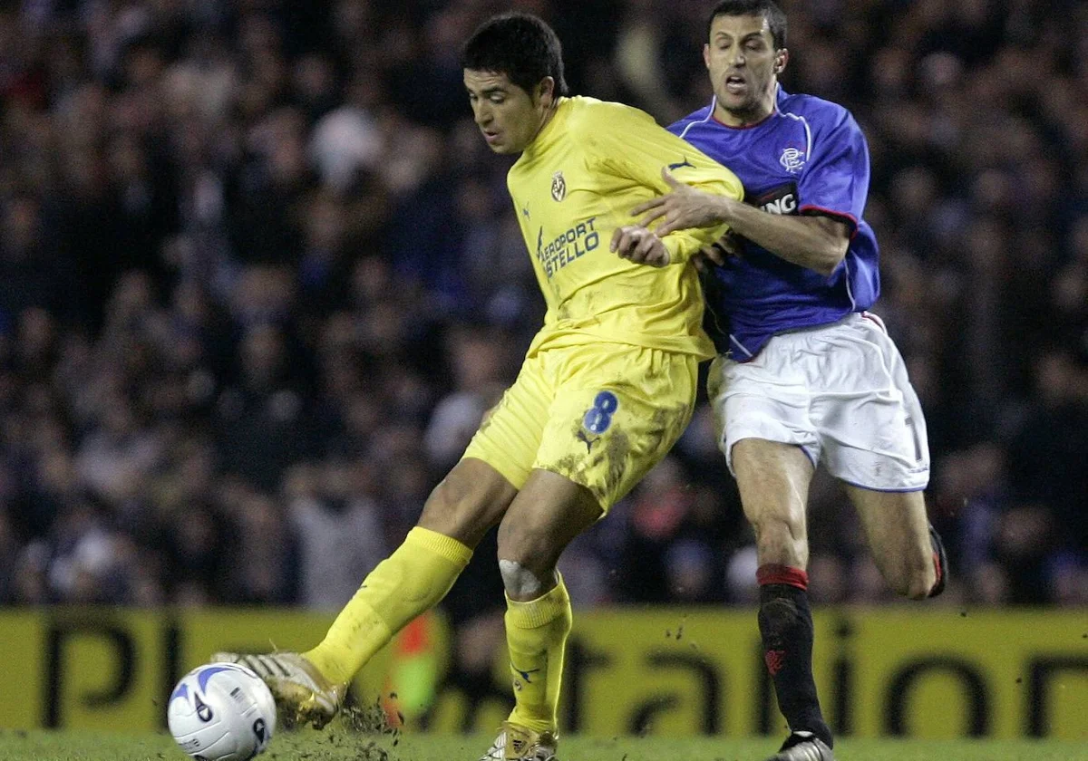 Первая игра прошла в Глазго. Уже на восьмой минуте мяч в ворота хозяев ударом с пенальти отправил Рикельме. Но на 22-й Питер Ловенкрандс сумел сравнять счет. На 35-й минуте Диего Форлан снова вывел «подводников» вперед, но удержать победу гостям не удалось. На 82-й минуте Хуан Мануэль Пенья отправил мяч в свои ворота, оставив тем самым «Рейнджерс» шансы на успех в этой паре.