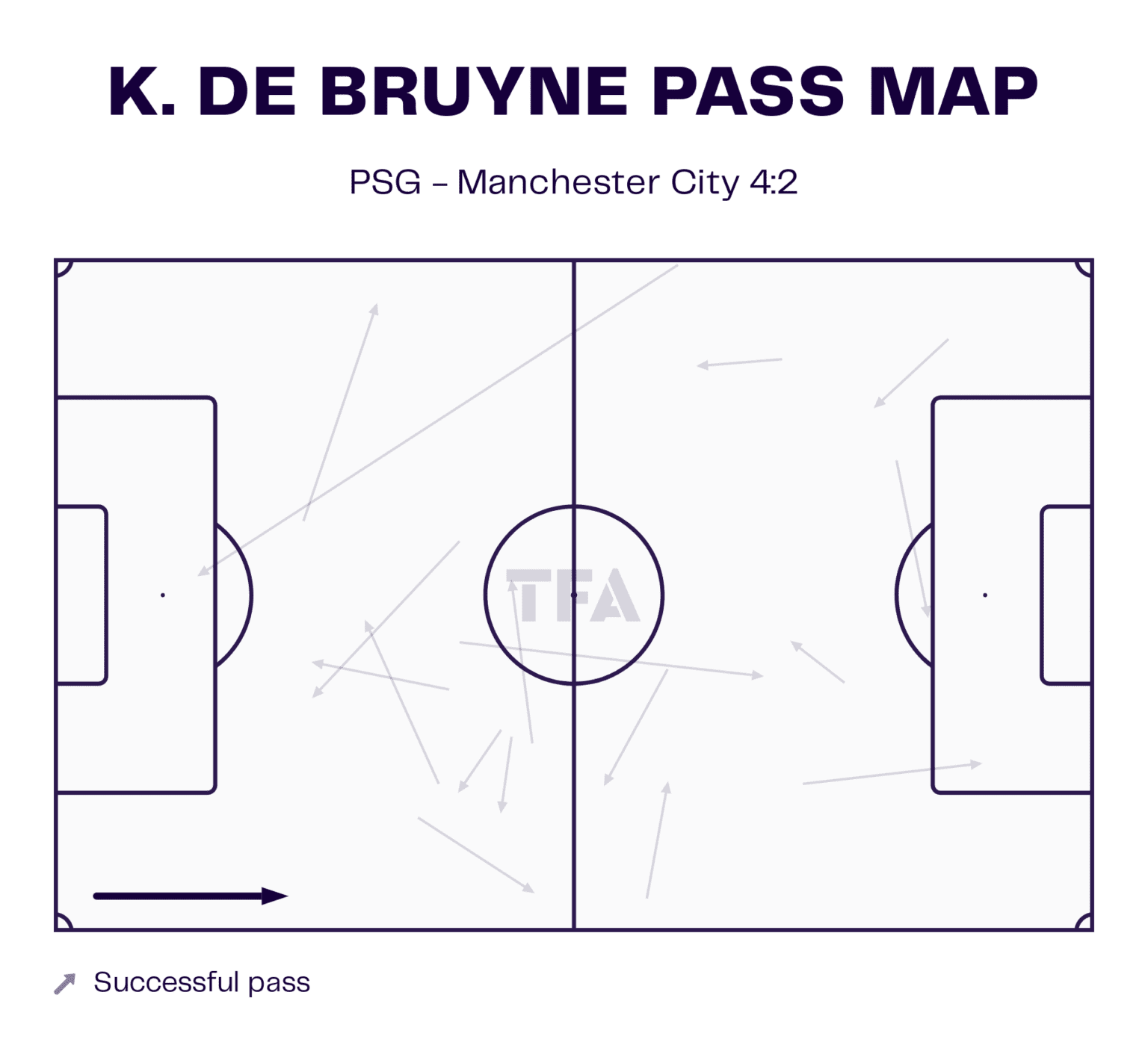 Ключевые игроки демонстрировали разную игру в двух таймах. Так, Кевин Де Брюйне, который сыграл важную роль в первом тайме, старательно пытался оказывать такое же влияние во втором. Это отражало изменение импульса и тактического ландшафта игры. Полузащитники «ПСЖ» плотно опекали его, из-за этого он не мог найти пространство, которым он наслаждался в первом тайме.
