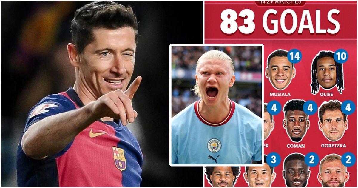 Портал Score90 вспомнил всех бомбардиров самых результативных команд этого сезона из топ-5 лиг Европы. У «Барсы» сразу за Левандовским идет Рафинья, который забил 23 мяча.