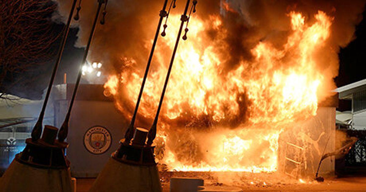 Фото дня: пожар у «Этихада». «Сити» отменил презентацию Хусанова, Мармуша и Рейса перед ЛЧ