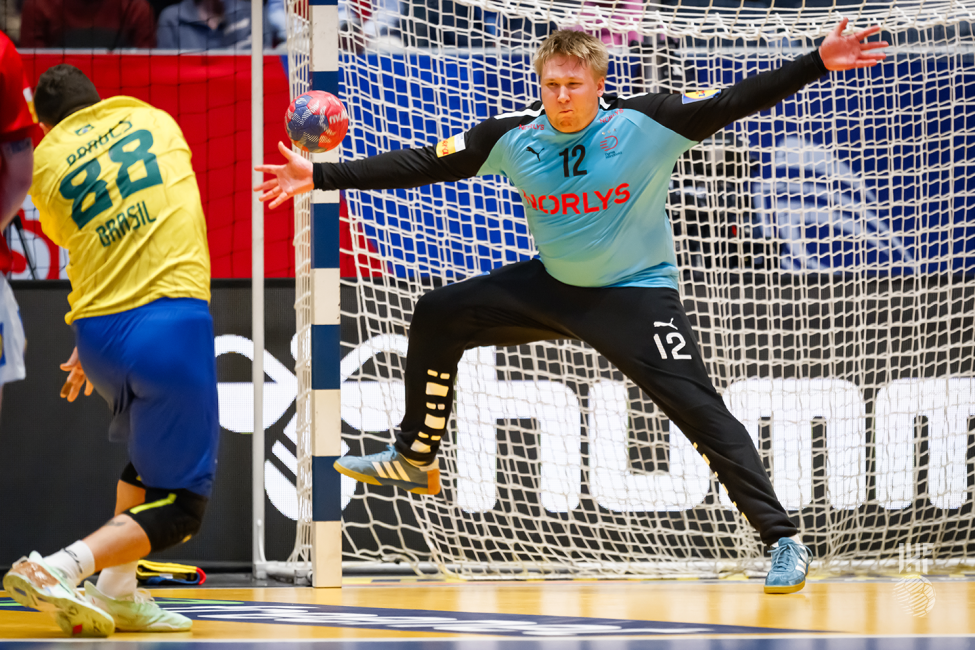 6:2 значилось на табло по истечении десяти минут. Ошибки бразильцев, неточные броски и отличная игра Эмиля Нильсена привели к серьезному разрыву в семь мячей. Датчане немного сбавили обороты за пять минут до конца первой половины. Было удаление у европейцев, и бразильцы смогли отквитать сначала пару мячей, а уйти на перерыв получилось с не такой уж и страшной разницей в минус три.