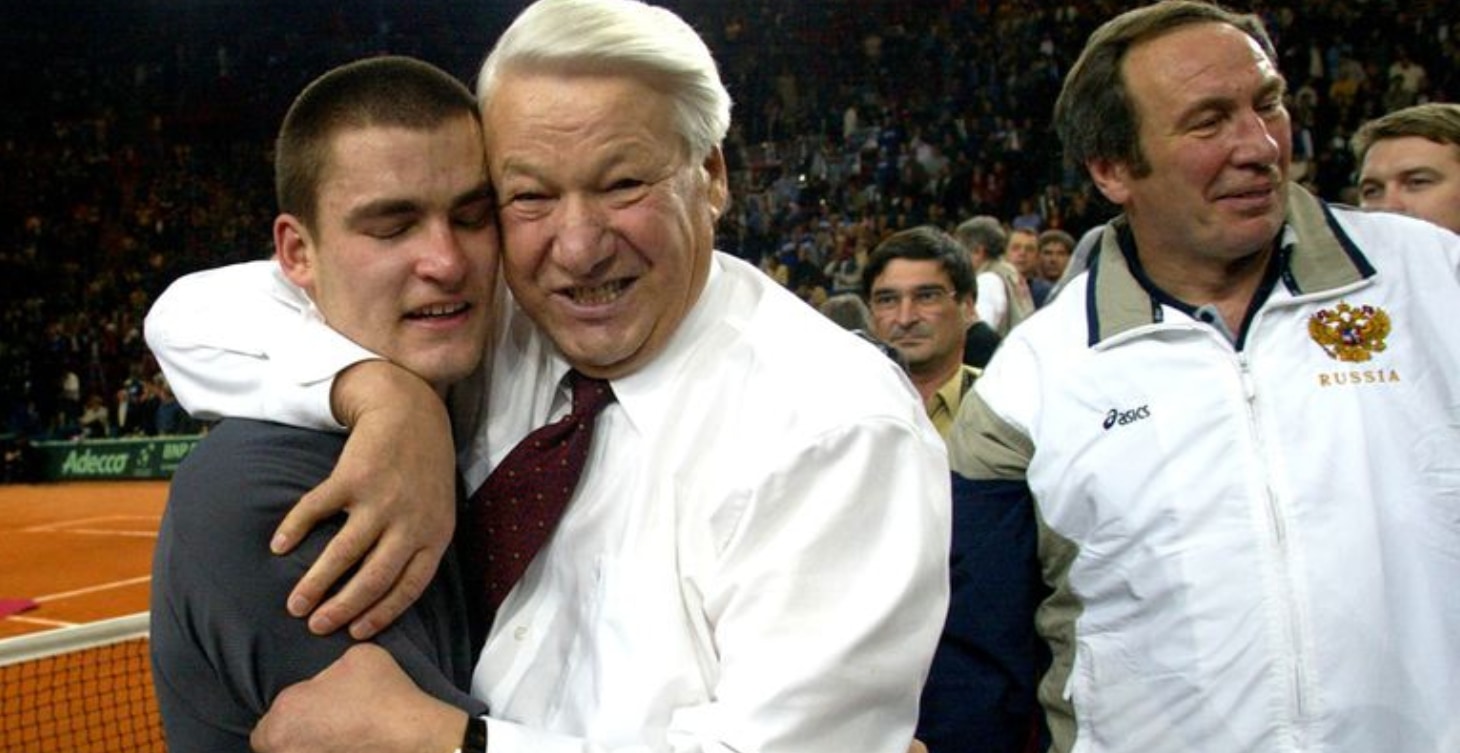 В 2002 году сборная России в Париже обыграла Францию (3:2) и впервые в истории выиграла Кубок Дэвиса. Ельцин сидел на трибунах, а потом погнал к нашим игрокам на корт, растолкав охрану, перелезая через ограждение, чтобы обнять победителей.