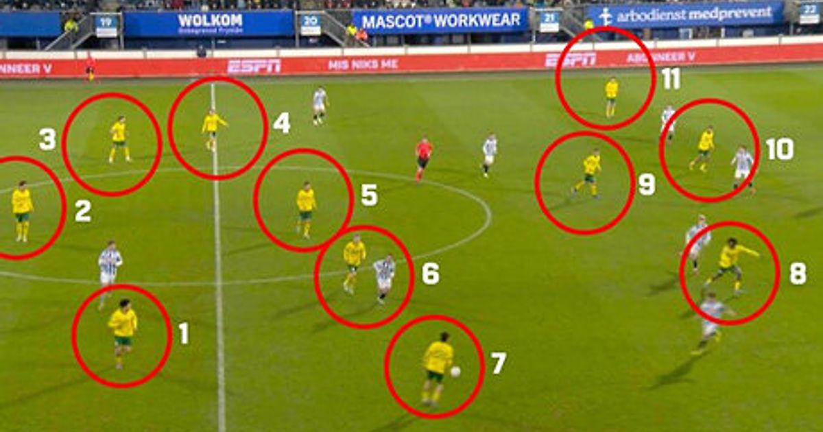 Эпизод произошел на 88-й минуте при счете 2:1 в пользу «Херенвена». «Фортуна» провела двойную замену: Дарио Груйчич и Оуэн Джонсон вышли на поле вместо Райана Фоссо и Яспера Дальхауса. Вот только последний не понял, что его заменяют, и не ушел – остался на поле. В итоге на поле около 30 секунд бегали 12 футболистов «Фортуны».