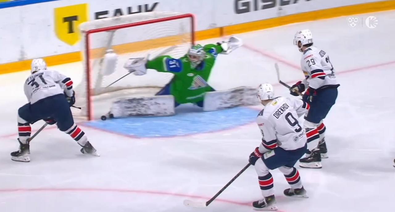 Интересно, что это не единственное эффектное действие Самонова в матче. «Металлург» был особенно активен во втором периоде, когда бросил по воротам Самонова 16 раз. От «Салавата» за тот период прилетело только 3 броска, а за весь матч – 24.