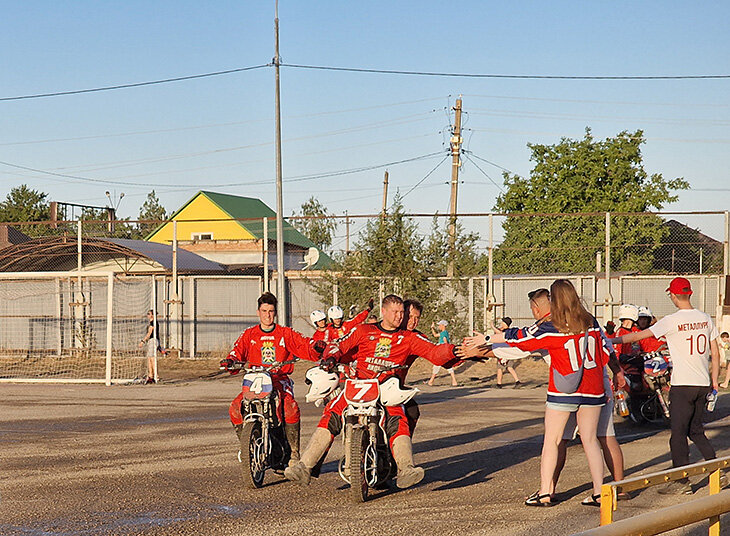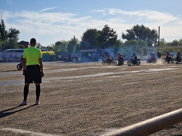 12 июля 2024 г. Краснодарский край, станица Кущевская, мотодром «Газовик». Чемпионат России по мотоболу. Комета — Металлург Видное 2:5. 200 зрителей (вмещает 300).