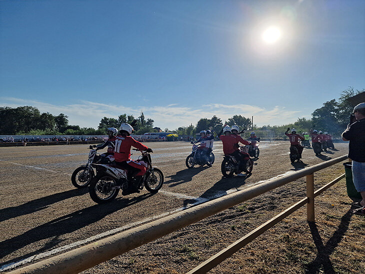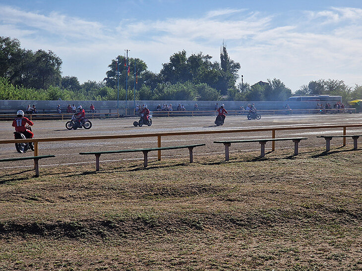 Если описывать впечатления от этого матча в двух (буквально в двух) словах, то эти два слова будут «можно оглохнуть». А если использовать чуть больше слов, но все равно оставаться кратким, то можно описать это так: восемь мотоциклов в течение часа с диким ревом носятся по гаревому полю под палящим солнцем на 37-градусной жаре, это дико, это захватывающе, это красиво.