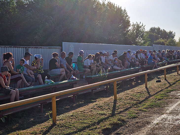 Цифры посещаемости и вместимости стадиона, приведенные в начале этого текста, весьма приблизительны. Никаких официальных данных нигде найти не удалось. На глазок кажется, что если на все эти утлые скамейки плотно усадить зрителей, то их уместится примерно триста. На этом матче зрителей было довольно много, но сидели они не плотно, и можно предположить, что их было человек двести. Это все очень примерно, приблизительно. Но почему-то кажется, что официальные цифры, если они вообще существуют, не сильно отличаются от вот этих, предположительных.