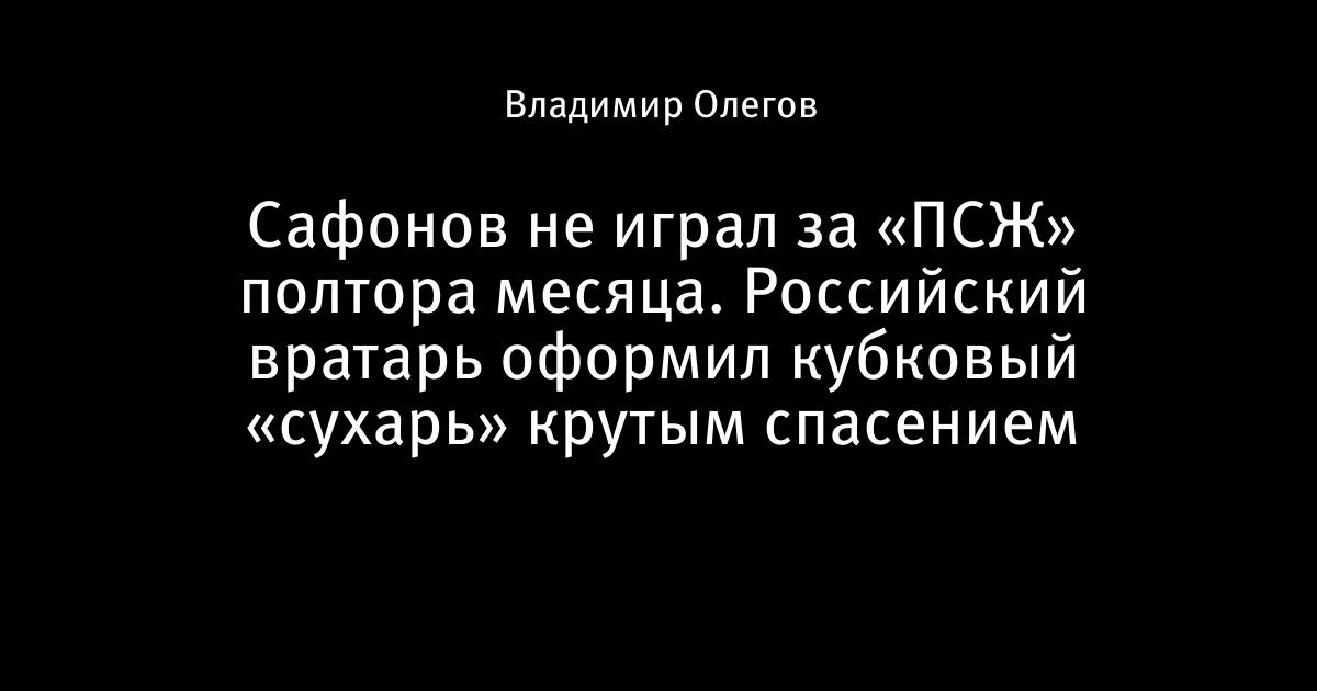 Сафонов не играл за «ПСЖ» полтора месяца. Российский вратарь оформил кубковый «сухарь» крутым спасением