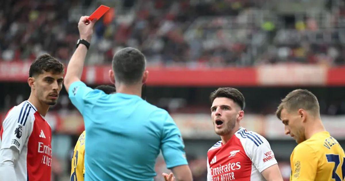 - Удаление Райса перед дерби с «Тоттенхэмом» – вторая желтая за легкую откидку мяча. Соперник, ударивший в том же эпизоде Деклана по ноге, не получил ничего.