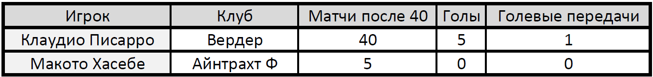 В Бундеслиге явно не котируют ветеранов — лишь два футболиста за последние 20 лет выходили на поле, будучи старше 39.