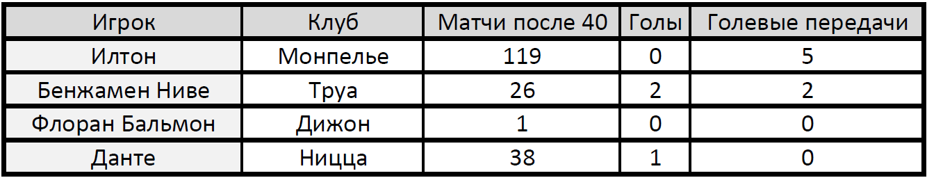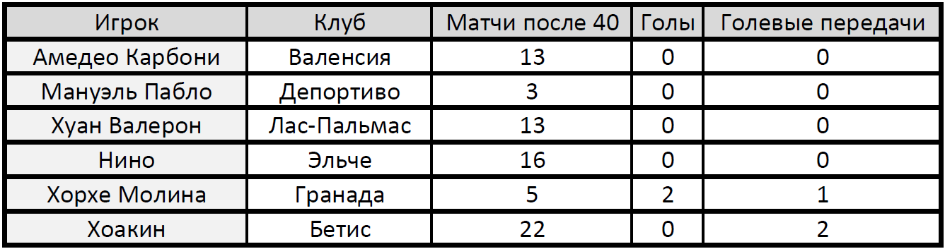 Игроки 40+ в топ-5 лигах